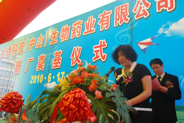 生命科技(中山)生物藥業有限公司董事長呂麗楠在致辭中表示,公司04年落戶健康基地以來,得到了基地以及政府相關職能部門的幫助和扶持,從而使公司得以成長壯大。新廠房的建設,是公司謀求跨越式發展的具體體現,公司將向著布局合理、功能完善集醫藥產業科研、信息、市場為一體的現代化企業邁進,并為地方經濟的發展貢獻力量。