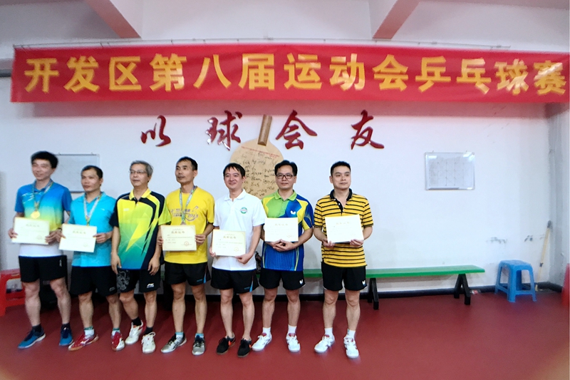 中山火炬開發(fā)區(qū)第八屆全運(yùn)會(huì)乒乓球賽于6月11日結(jié)束,國(guó)家健康基地乒乓球隊(duì)運(yùn)動(dòng)員經(jīng)過奮力拼搏,榮獲男子單打金牌,女子團(tuán)隊(duì)銀牌,女子單打銅牌,女子單打第四名,男子團(tuán)隊(duì)第五名,領(lǐng)導(dǎo)組女子單打第四名、第五名,共獲得獎(jiǎng)牌7枚,獲得獎(jiǎng)牌數(shù)居全區(qū)第一。