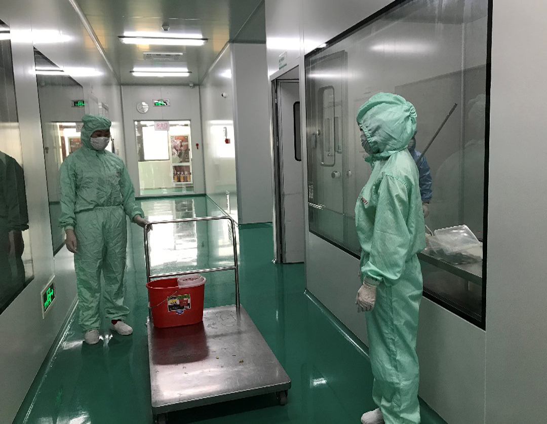 生產區清潔規范要求清潔人員每天對制劑、提取大樓(樓梯,一般區更衣通道)進行清潔和消毒,每天上午、下午各一次,手接觸地方重點消毒(如門把手、打卡機)。車間人員嚴禁乘坐電梯,只有物料可通過電梯運輸,電梯按鍵每小時用75%乙醇消毒一次。所有物料進入車間按規定進行清潔消毒,自凈時間30分鐘。