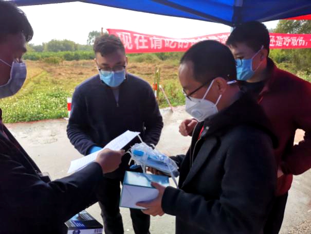 ▲2020年2月3日,火炬區余石貴組長赴團結村檢查指導疫情防控工作并向駐村工作隊派發防護用具。
