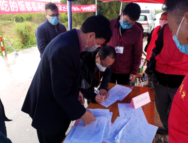 ▲駐村工作隊會同鎮村干部走村入戶開展疫情防控宣傳和排查工作。
