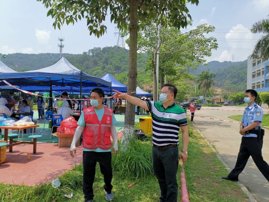 ▲區管委會副主任徐世平到檢測點現場指導流程設置等工作