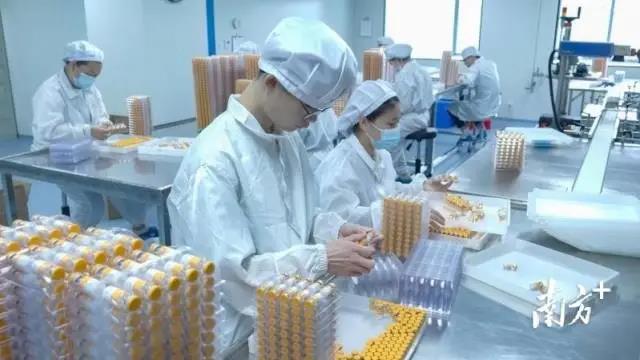 中山未名海濟生物醫藥有限公司包裝車間員工對產品進行檢查包裝