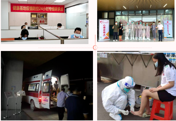 健康基地集團園區黨委按照上級指示,迅速部署,向各黨支部、全體員工和全體黨員發出集結號,成立黨員先鋒隊、青年突擊隊投入到核酸檢測、物資保障、人員安置、人文關懷等工作中,黨員同志們沖鋒在前、勇挑重擔,以實際行動詮釋了應有的使命擔當,充分發揮黨組織的戰斗堡壘和黨員的先鋒模范作用,用責任和擔當把鮮艷的黨旗擎立在防控疫情陣地最前沿。