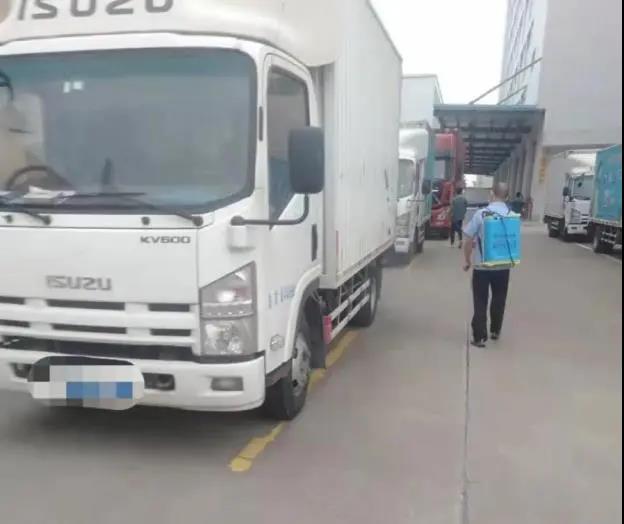 在九州通醫藥有限公司,裝滿藥物的貨車經過多次消殺后緩緩駛出公司大門。
