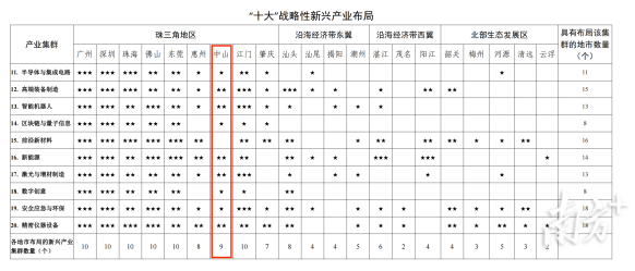 在“十大”戰(zhàn)略性支柱產(chǎn)業(yè)布局上,中山被列入全部產(chǎn)業(yè)布局范圍,是全省6個全部被列入的城市之一(分別為廣州、深圳、佛山、惠州、中山、江門)。其中,現(xiàn)代輕工紡織、生物醫(yī)藥與健康、現(xiàn)代農業(yè)與食品3個產(chǎn)業(yè)將中山作為核心布局城市,智能家電、軟件與信息服務、超高清視頻顯示3個產(chǎn)業(yè)將中山作為重點布局城市。