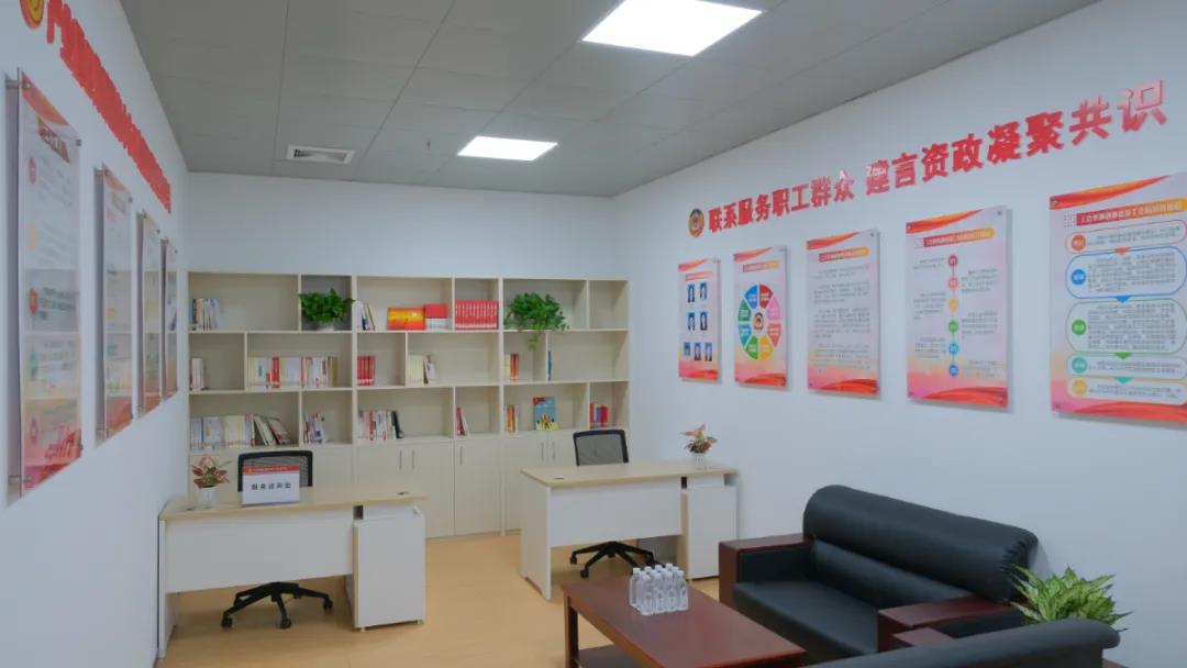 揭牌儀式后,劉國斌、唐穎、陳文鋒、蔡宏、林少棠等領(lǐng)導(dǎo)參觀了工作站和服務(wù)中心,詳細(xì)了解各功能室建設(shè)、人員配備、工作職責(zé)等情況。省總工會(huì)、市總工會(huì)、區(qū)總工會(huì)相關(guān)領(lǐng)導(dǎo),市工會(huì)界別政協(xié)委員,以及產(chǎn)業(yè)園區(qū)企業(yè)家以及職工代表共80多人參加活動(dòng)。