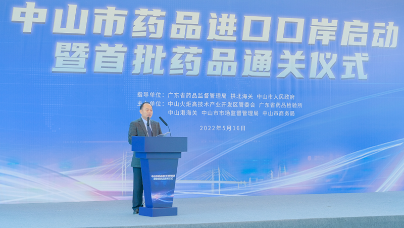 蘇盛鋒在致辭中表示,省藥品監督管理局將一如既往地支持中山藥品進口口岸建設,將中山藥品進口口岸打造成為大灣區乃至全國藥品進口備案最便捷、流程最優、通關最快的口岸,為中山生物醫藥產業發展提供有力支撐,助力中山成為全國生物醫藥制造大市和粵港澳大灣區生物醫藥物流高地。他建議,中山要勇于改革創新,持續優化藥品進口通關備案工作流程和機制,提升藥品進口通關備案工作效率。