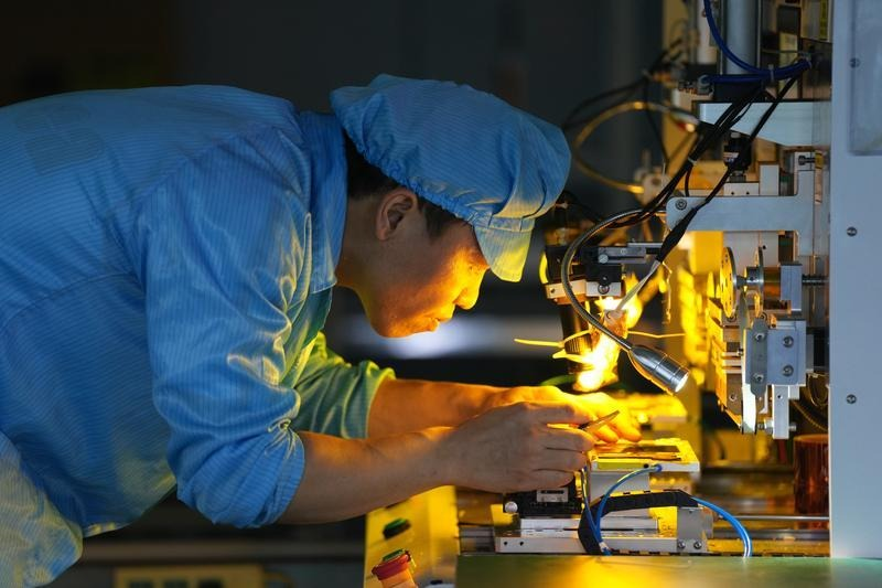 圖:血壓計(jì)是樂心醫(yī)療的主打產(chǎn)品,工人們正在進(jìn)行裝配。