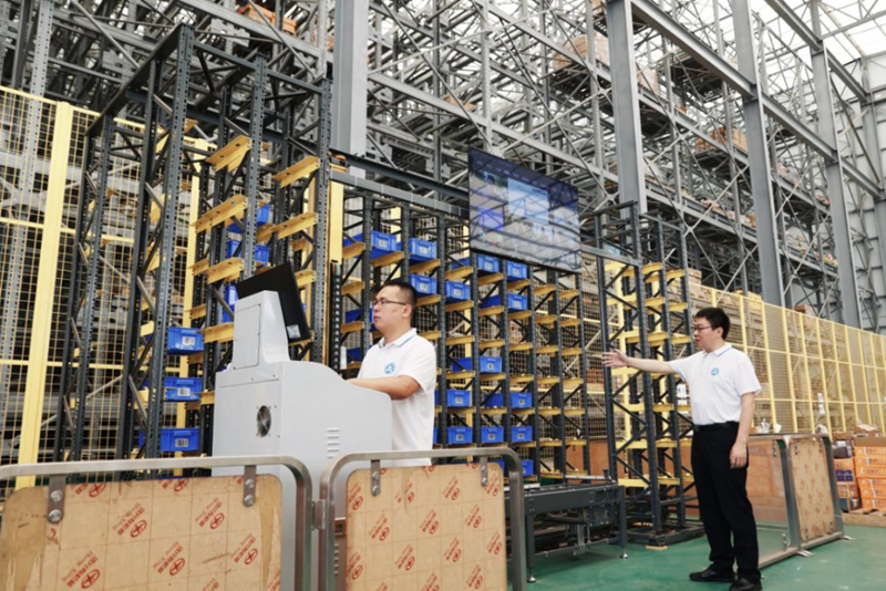 條碼識別后,貨物經過環線穿梭車(RGV)實現自動存放;AGV協助入庫貨物實現全自主移動;堆垛機將貨物迅速從貨架取出,并自動輸送到分揀區……這是健康基地園區企業廣東得友鑫物流系統設備有限公司自主研發生產的自動化立體倉,展示了貨物從入庫、運輸、分揀到出庫等全流程的智慧倉儲服務能力。