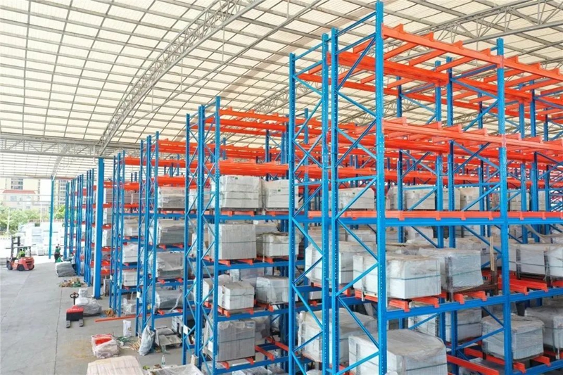 走進倉庫,只見3萬平方米的倉庫有序堆滿了各種大大小小的立體貨架組裝原件。
