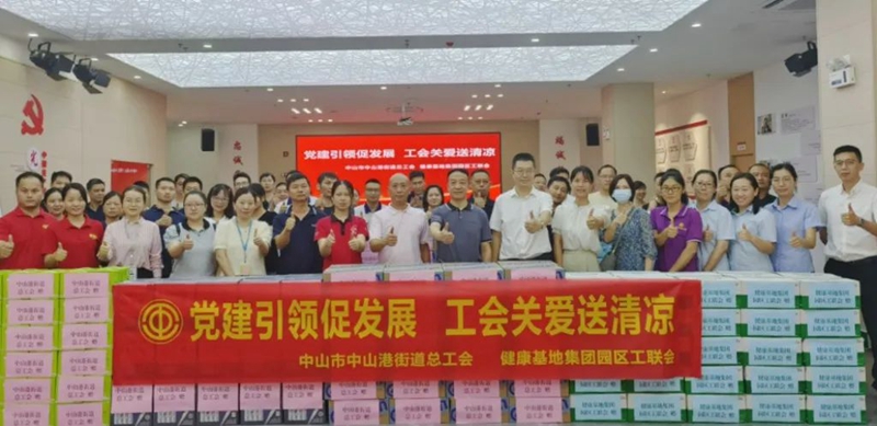 入伏以來,我市高溫天氣持續,給高溫作業一線職工帶來嚴峻的“烤”驗。為深入學習貫徹黨的二十大精神及習近平總書記關于工人階級和工會工作的重要論述精神,進一步做好高溫天氣下工會勞動保護工作,切實維護廣大職工在盛夏高溫季節的安全健康權益,7月27日,中山港街道總工會走進健康基地集團園區開展“職工健康行・工會送清涼”活動,為高溫作業一線職工送去一絲清涼,解除一分暑熱,傳遞一份關愛。中山港街道總工會專職副主席考振柱、二級主任科員何健中、健康基地集團園區黨委副書記、工聯會主席吳琰光以及園區近50家企業工會代表參加活動。