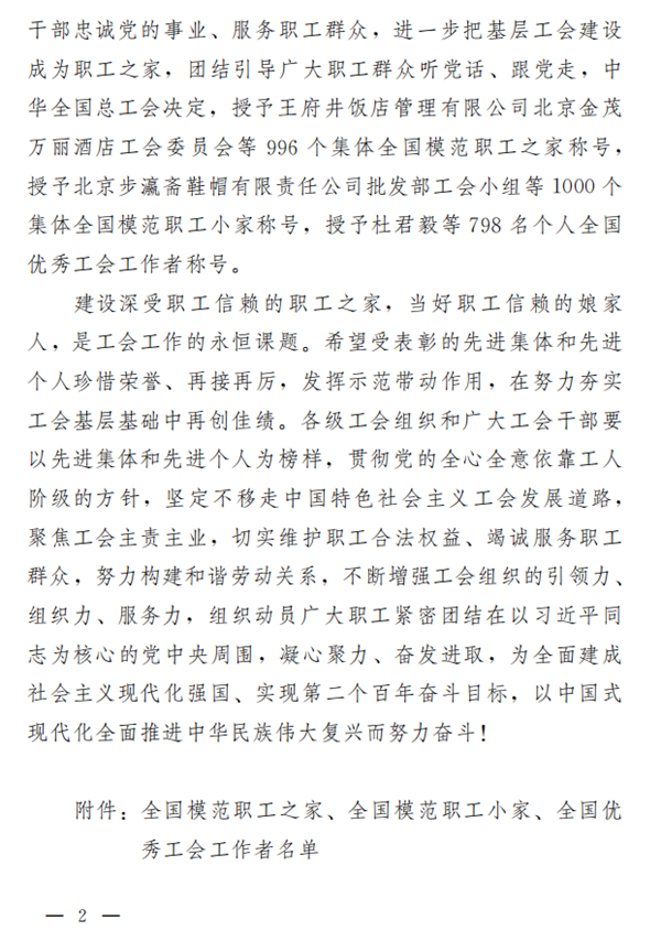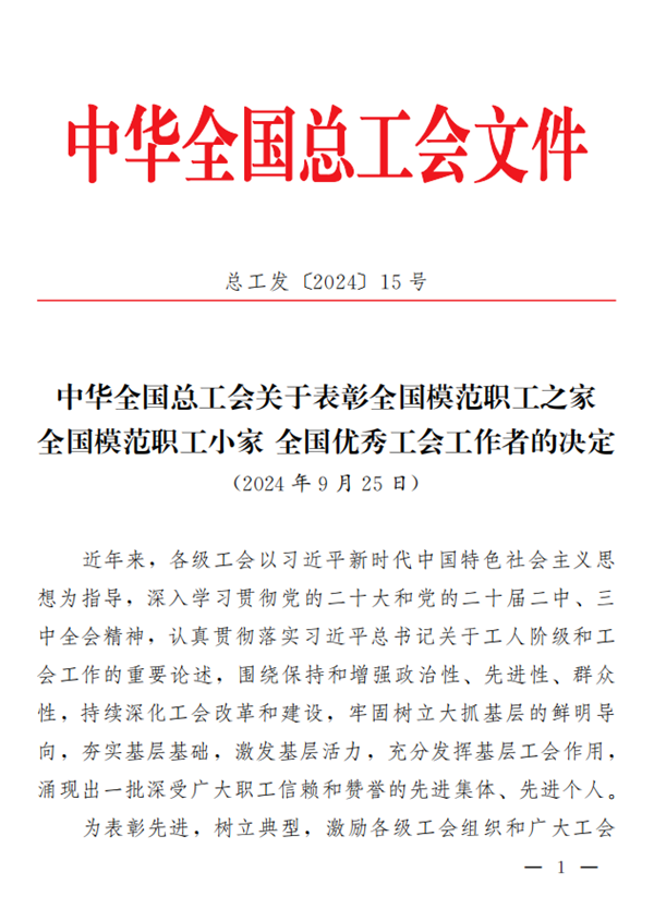 近日,中華全國總工會印發(fā)《中華全國總工會關(guān)于表彰全國模范職工之家 全國模范職工小家 全國優(yōu)秀工會工作者的決定》,表彰了一批先進集體和先進個人。來自健康基地園區(qū)的武藏精密汽車零部件(中山)有限公司工會委員會被授予全國模范職工之家稱號。