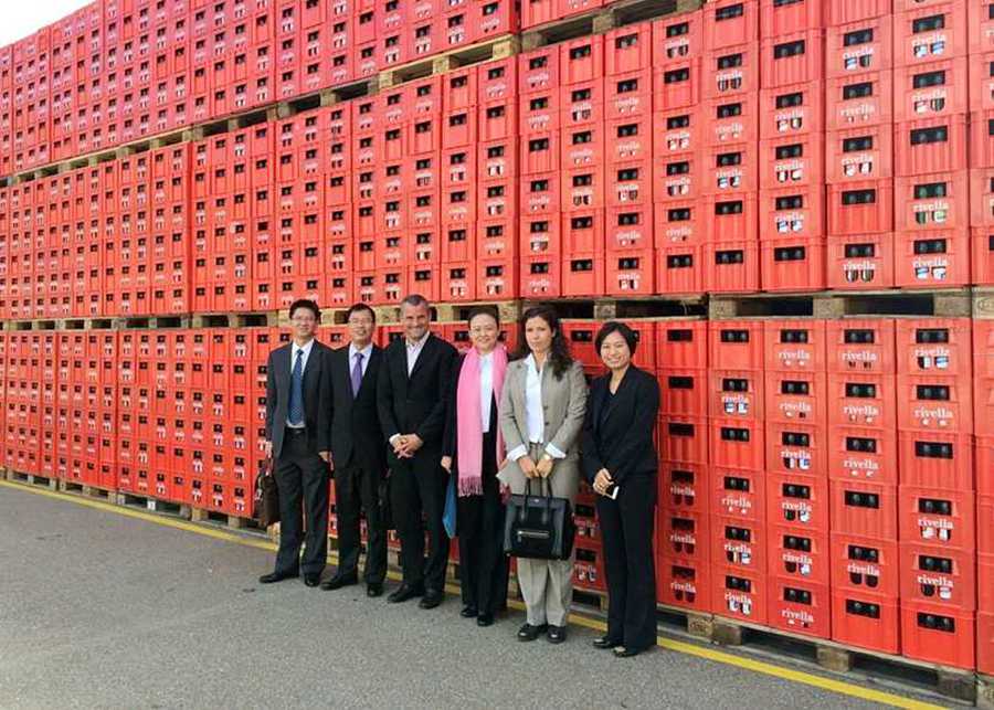 瑞士當地時間10月20日上午,由中山市食品藥品監督管理局副局長曾德強帶隊,國家健康基地副總經理林霞等中山經貿代表團一行參觀考察位于瑞士Rothrist的Rivella公司。