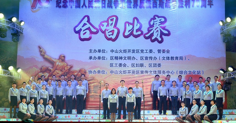 9月22日,由中山火炬開發區黨工委、管委會主辦的紀念中國人民抗日戰爭暨世界反法西斯戰爭勝利70周年合唱比賽(企業組)拉開帷幕。健康基地全體員工積極參賽,并斬獲銀獎。