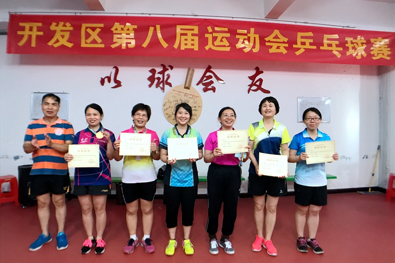 領導組女子單打頒獎現場,健康基地獲得第四名、第五名