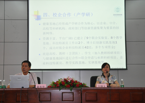 作為中山市健康科技產(chǎn)業(yè)基地發(fā)展有限公司總監(jiān),梁兆華向同學(xué)們介紹了中山健康基地的平臺優(yōu)勢和人才需求,歡迎同學(xué)們關(guān)注健康基地,在健康基地尋找實(shí)踐機(jī)會,為即將畢業(yè)的健康醫(yī)藥專業(yè)的學(xué)生提供了豐富的就業(yè)信息。
