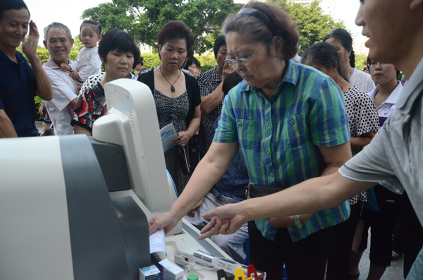 商報訊 血壓高不高,血糖控制得怎么樣……重陽節來臨之際,國家健康基地昨日將“健康小屋”等電子醫療設備送入火炬區健康花城,讓近百名老人在家門口免費享受“微體檢”。