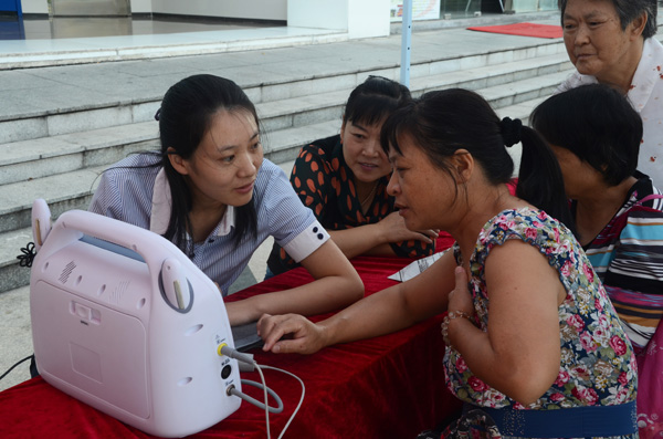 據介紹,“健康小屋”是自助體檢建檔系統,通過二代身份證,快速建立居民個人健康檔案,并獲取心電、血壓、身高、體重、血糖、血氧等多組體檢數據。系統安裝了自助式大型觸控屏幕,人機互動,方便操作。